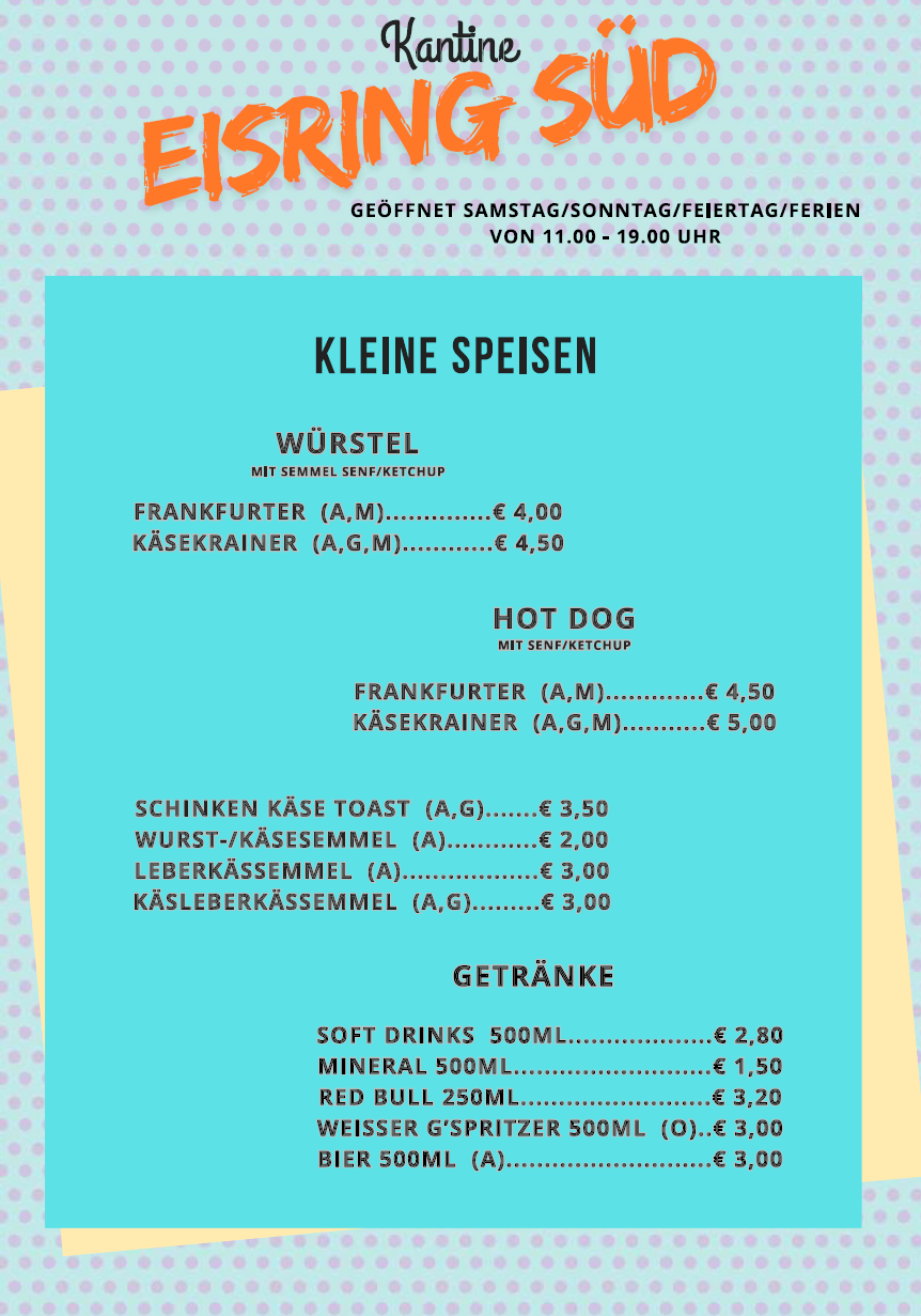 Am Wochenende und in den Ferien ist auch unsere Kantine von 11 bis 19 Uhr geöffnet.